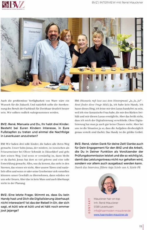 Als Meisterbetrieb bieten wir Ihnen professionelle Dienstleistungen rund um Haarpflege, Schneiden, Styling und Zweithaar an. Lassen Sie sich in unserem hellen, modern eingerichteten Salon Mauckner Haarmoden in Leverkusen von unserem qualifizierten Team verwöhnen. Unser Team legt größten Wert auf präzise und sorgfältige Arbeit. Gerne besprechen wir mit Ihnen Ihre Wünsche und Vorstellungen. Bei der Auswahl der Pflegeprodukte achten wir besonders auf hohe Qualität. Als Spezialist für Zweithaar sind wir auch überregional tätig. Mauckner hair on top heißt unser Salon, den wir unseren Dienstleistungen rund um das Zweithaar gewidmet haben.